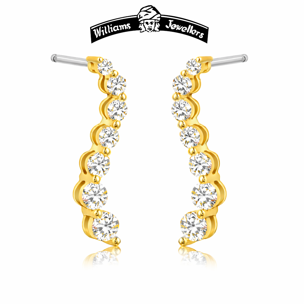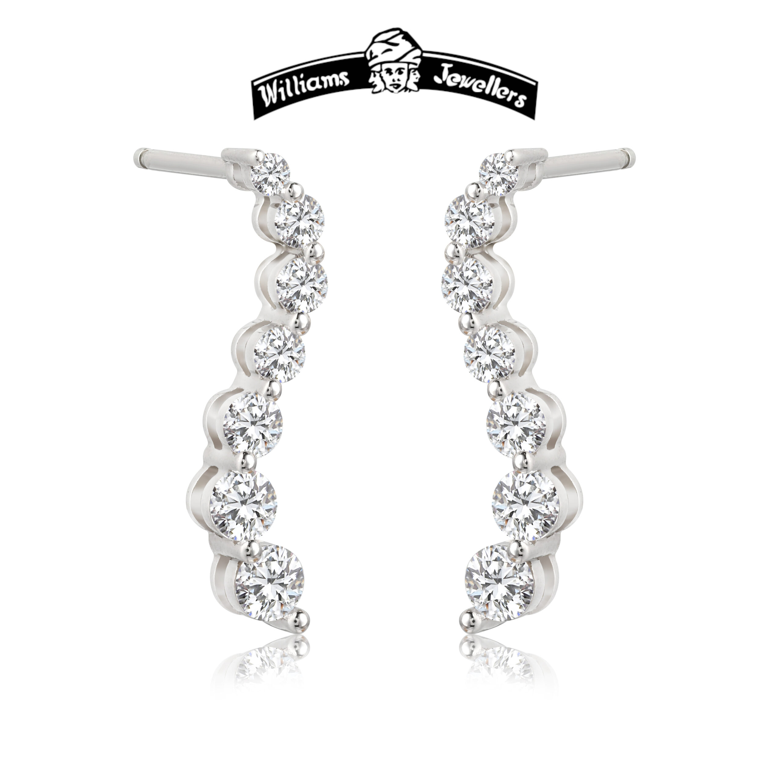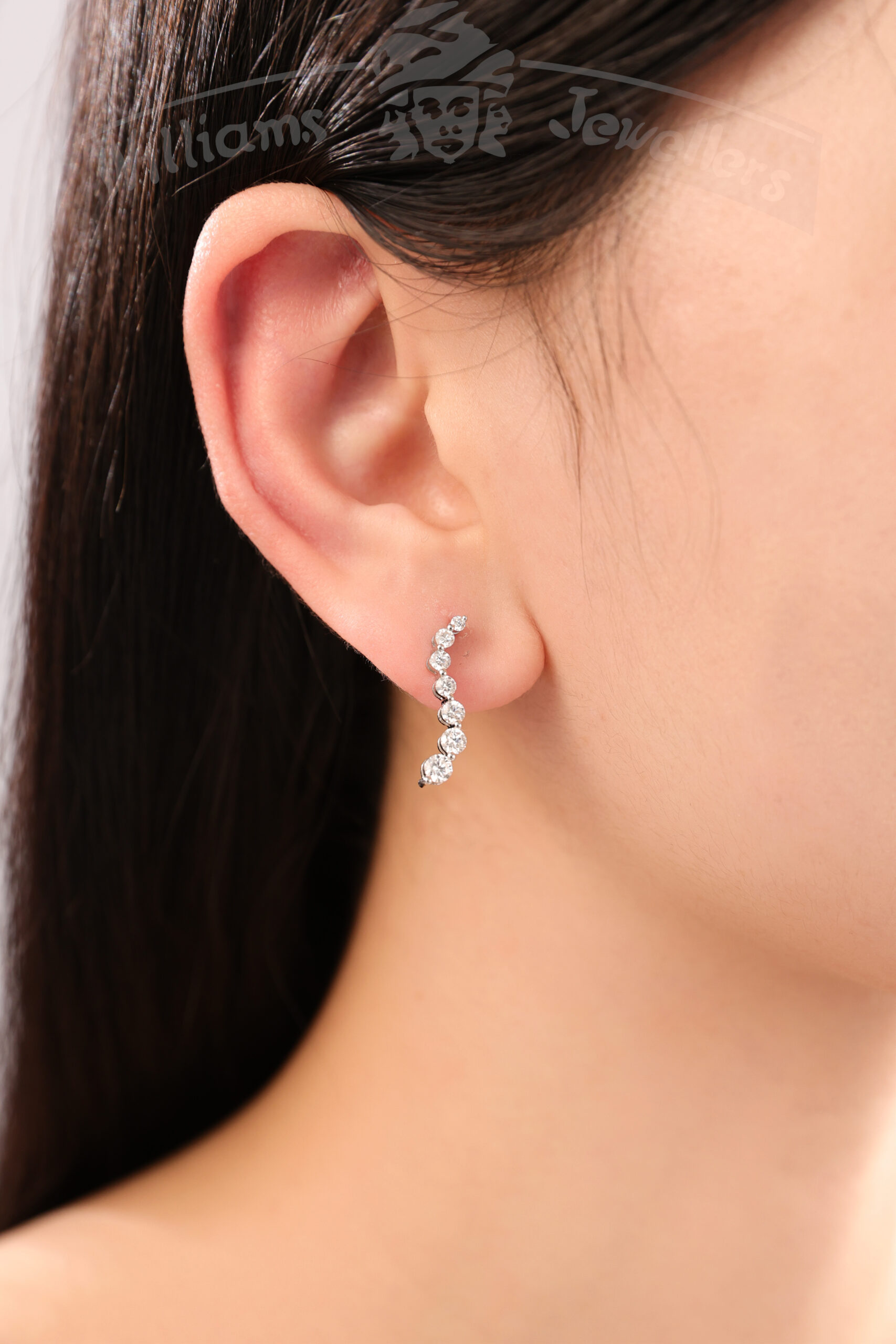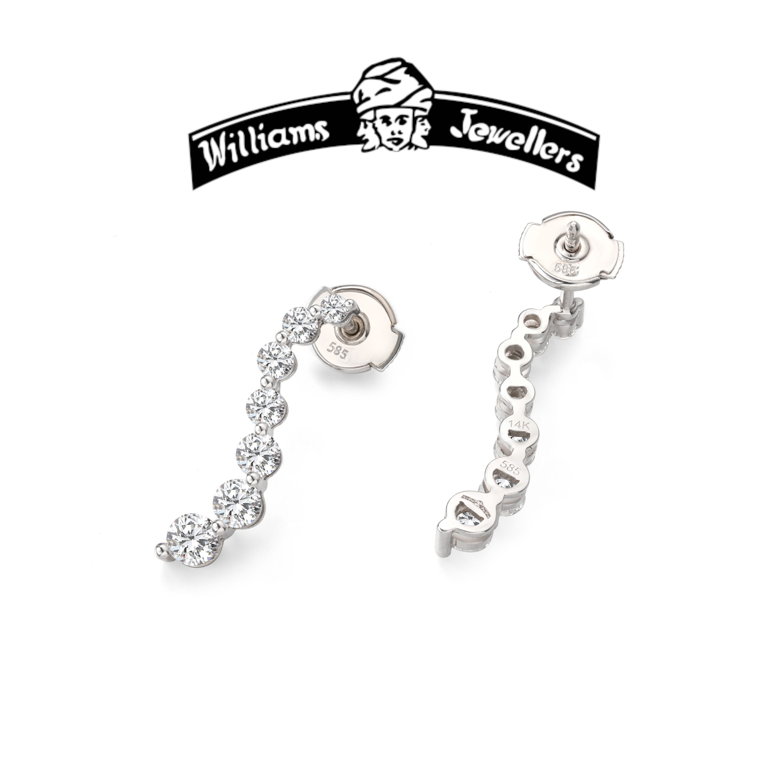 14K gold Journey earring. Available in white and yellow gold with 2ct premium quality lab grown diamonds. All our earrings come with a new safety back; you will never lose this earring. All our posts are in white gold to ensure sturdiness & durability.