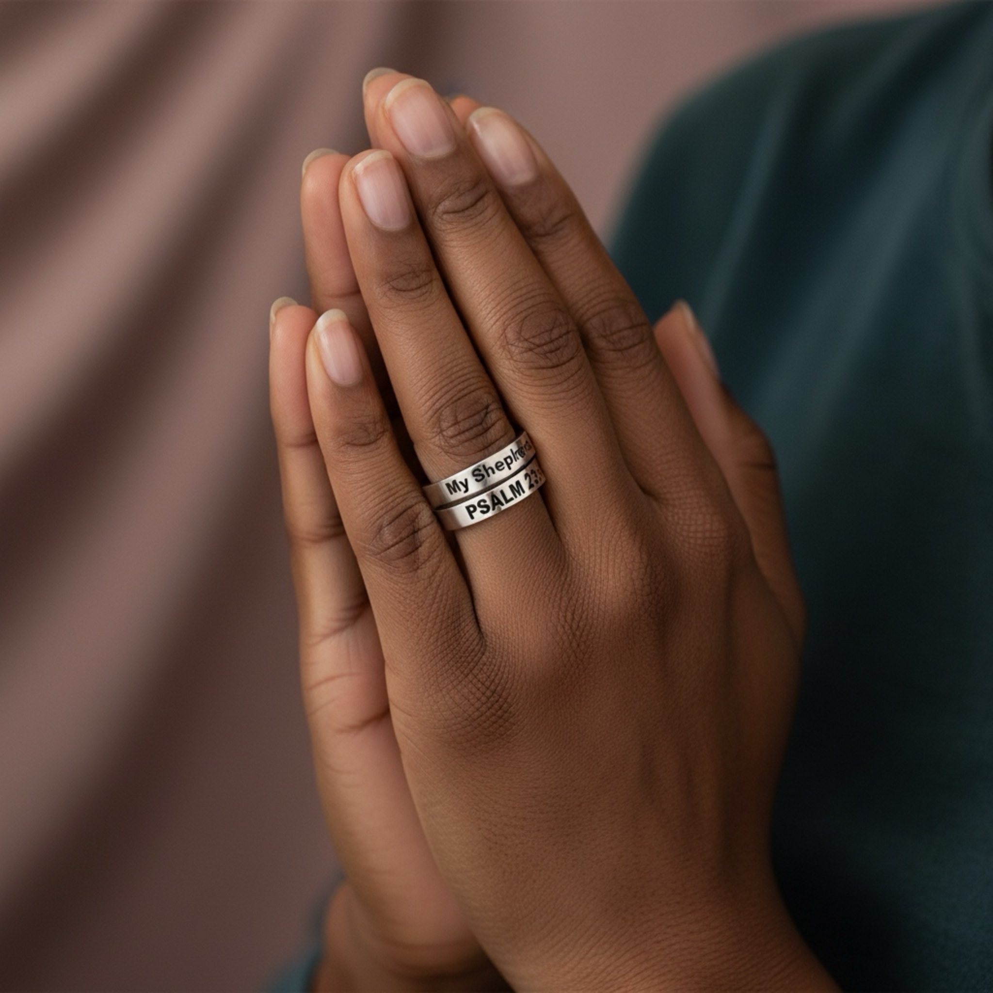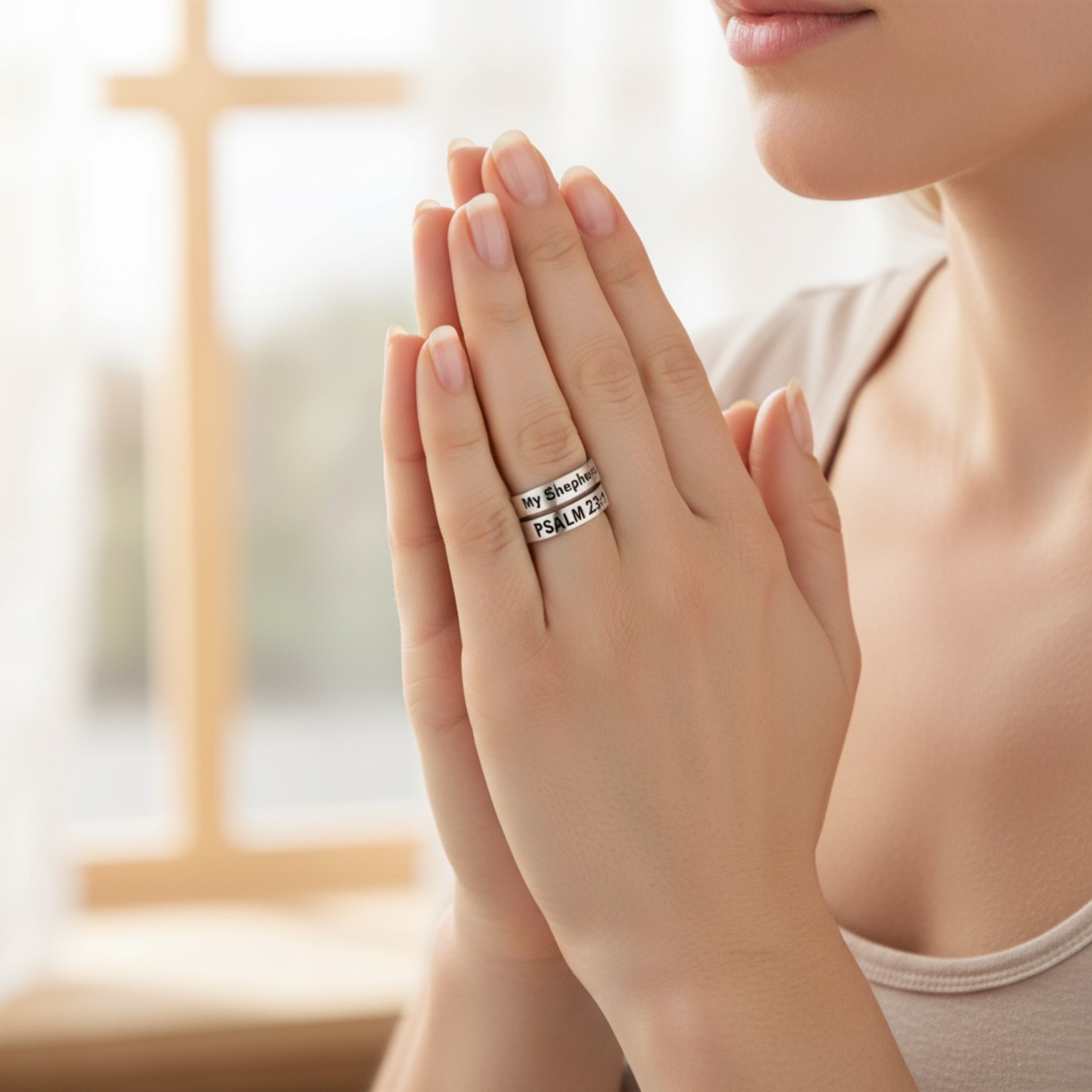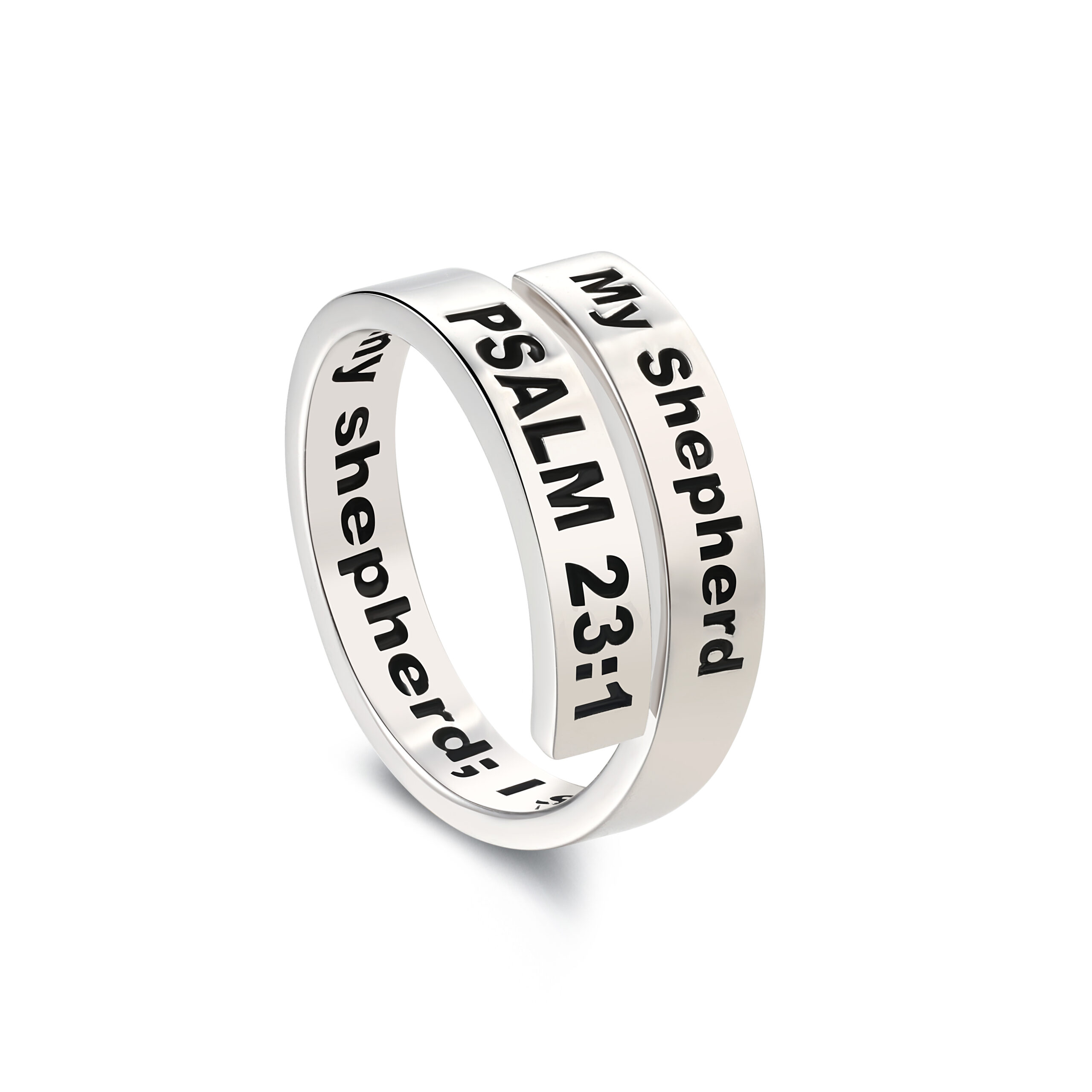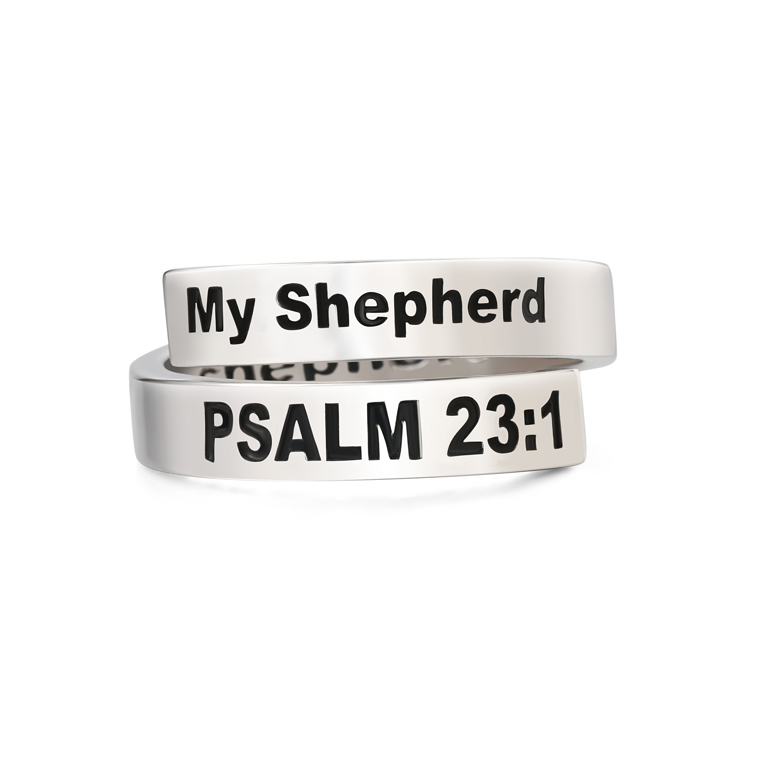 My Shepherd Psalm 23 ring. Available in Sterling Silver 925, & 14K yellow gold. Sizes we have in stock. ships in 24-48 hours. Sterling silver only 6, 7, 8 & 9. Other sizes and metals choices is available on back order, 2-3 weeks delivery within the USA & Canada. For special orders: WhatsApp +13478614301