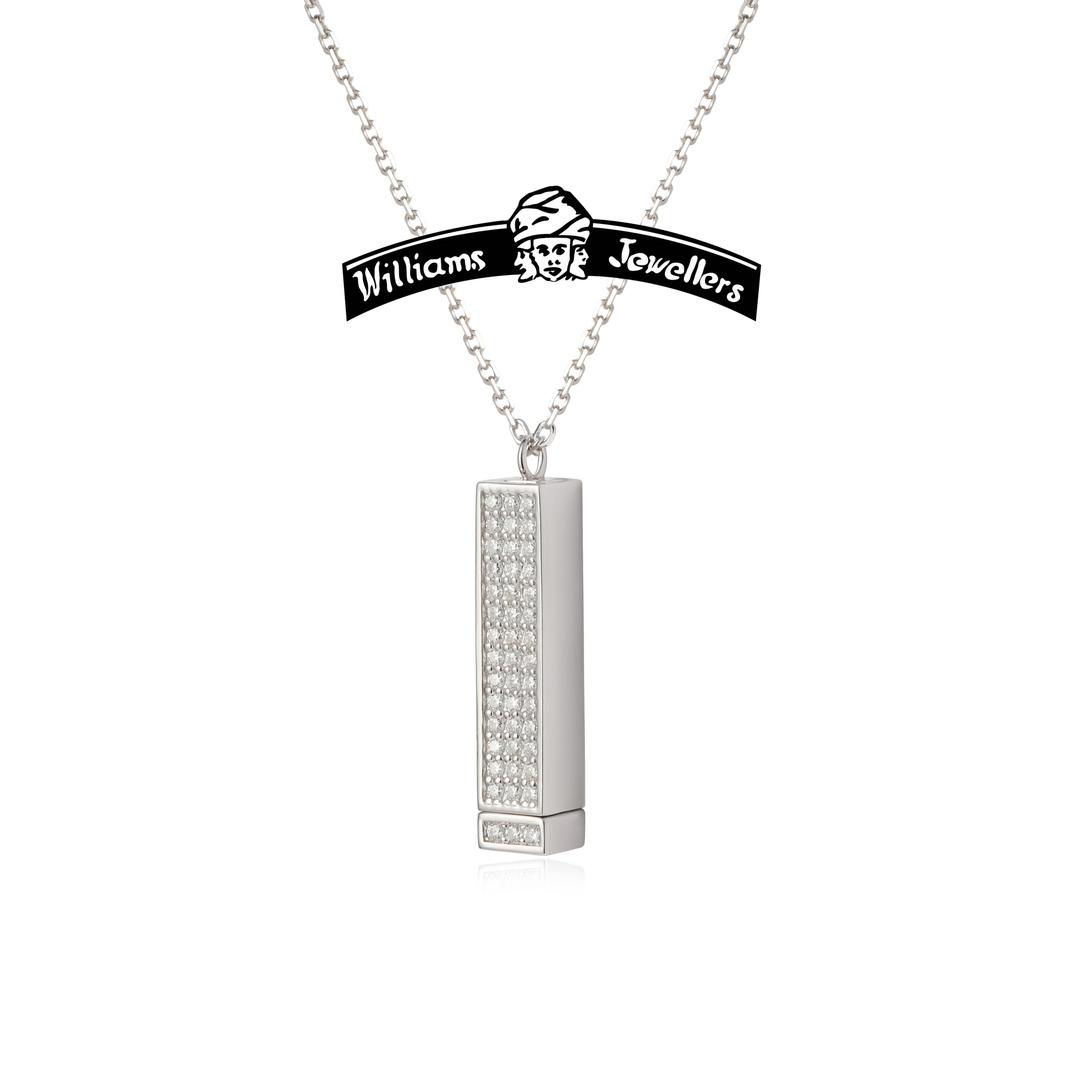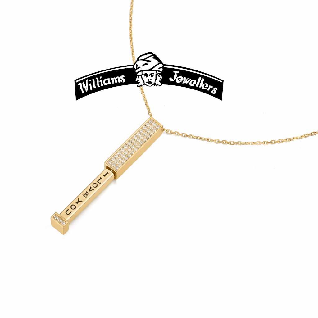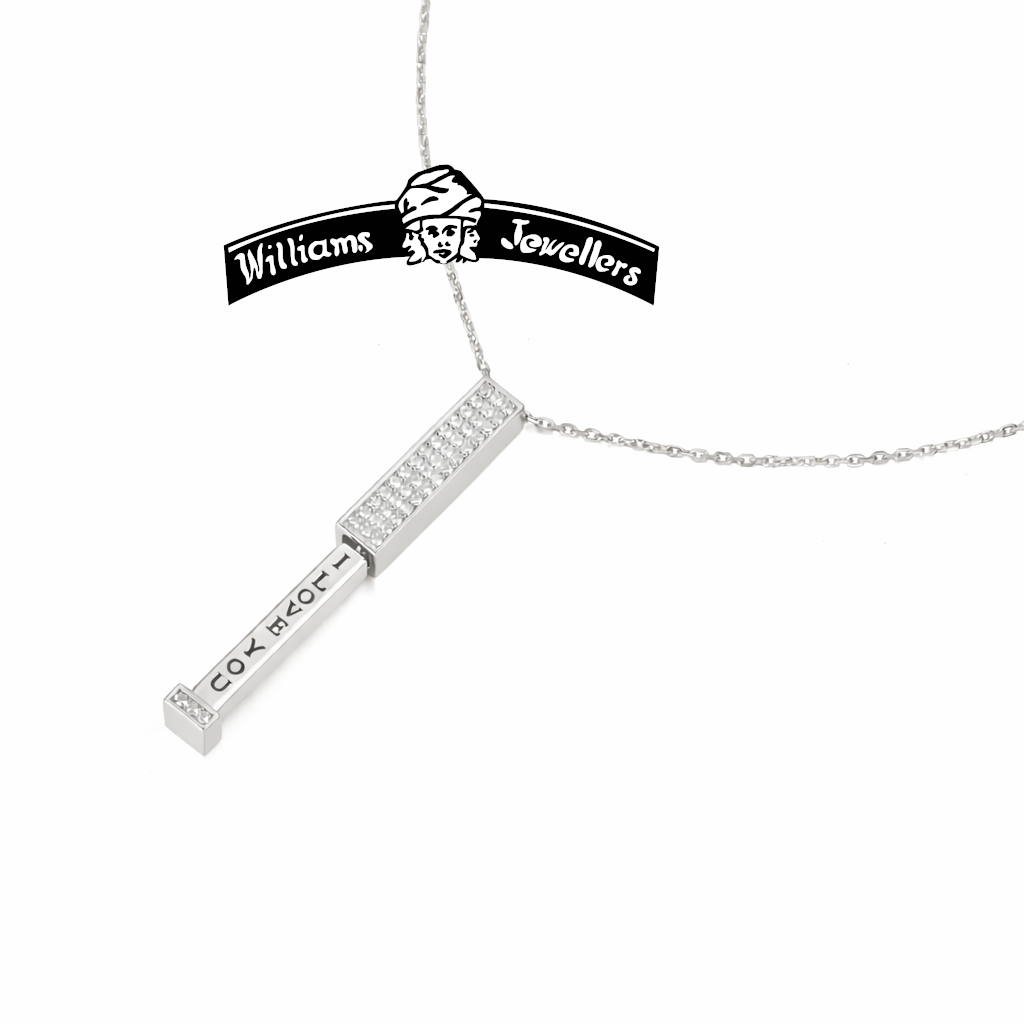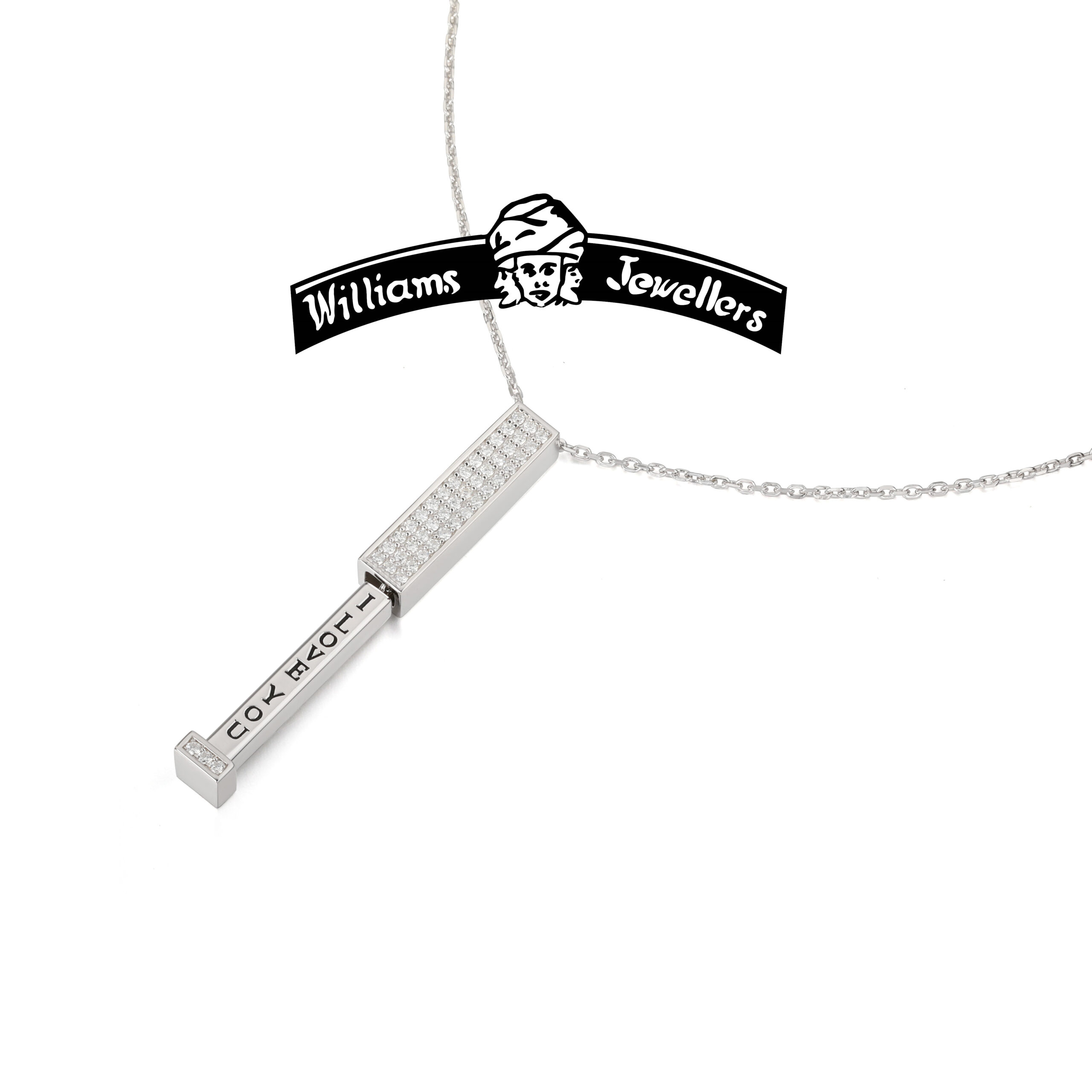 I Love You “Tower”, hand set with 45 A++ quality Lab Grown Diamonds, total diamond weight 0.25 Carats, Available in 925 Sterling Silver and 14K Yellow or White gold, 18-inch cable link chain included. Make your choice below. Custom engraving available, time permitting. Other metal choices, email or call with your requests