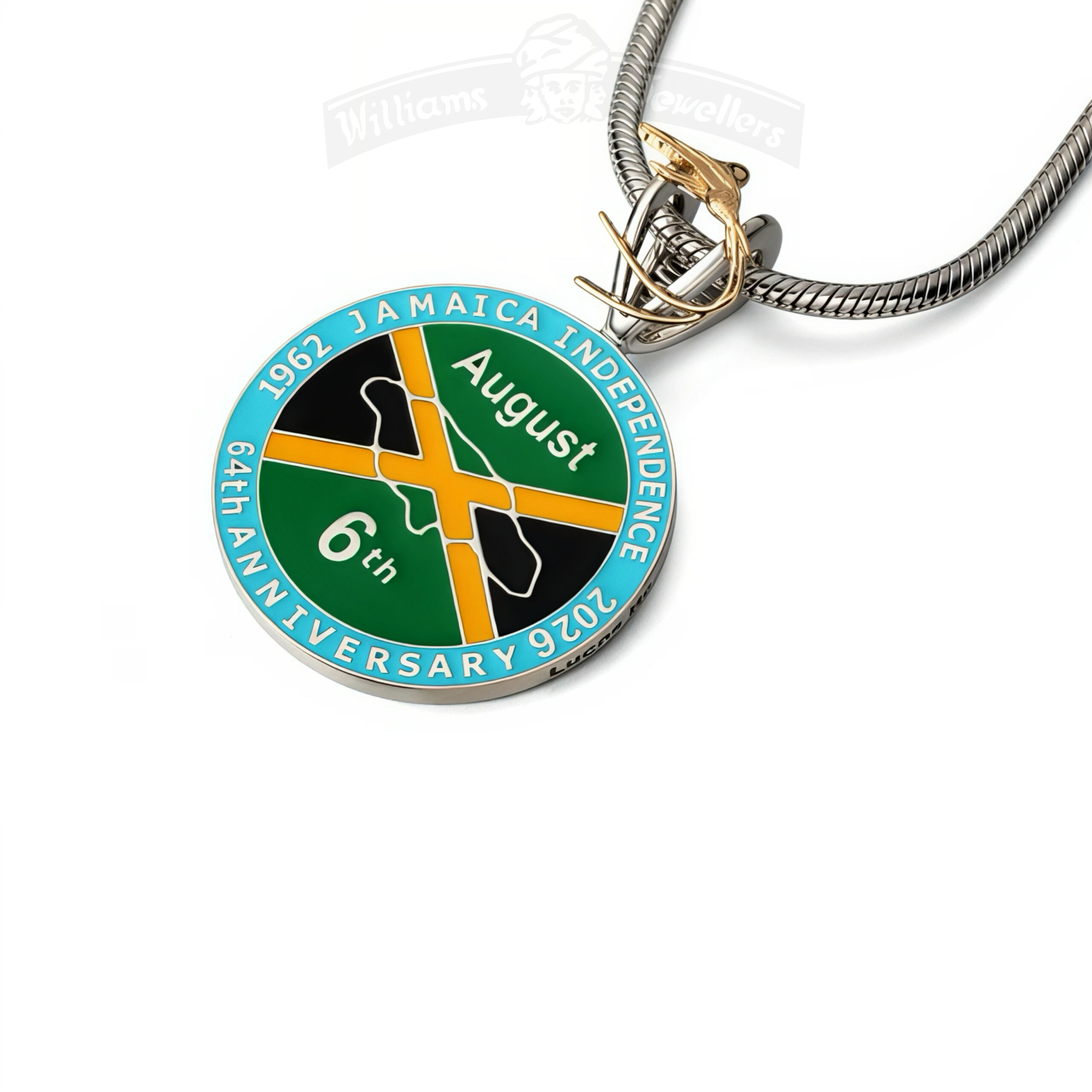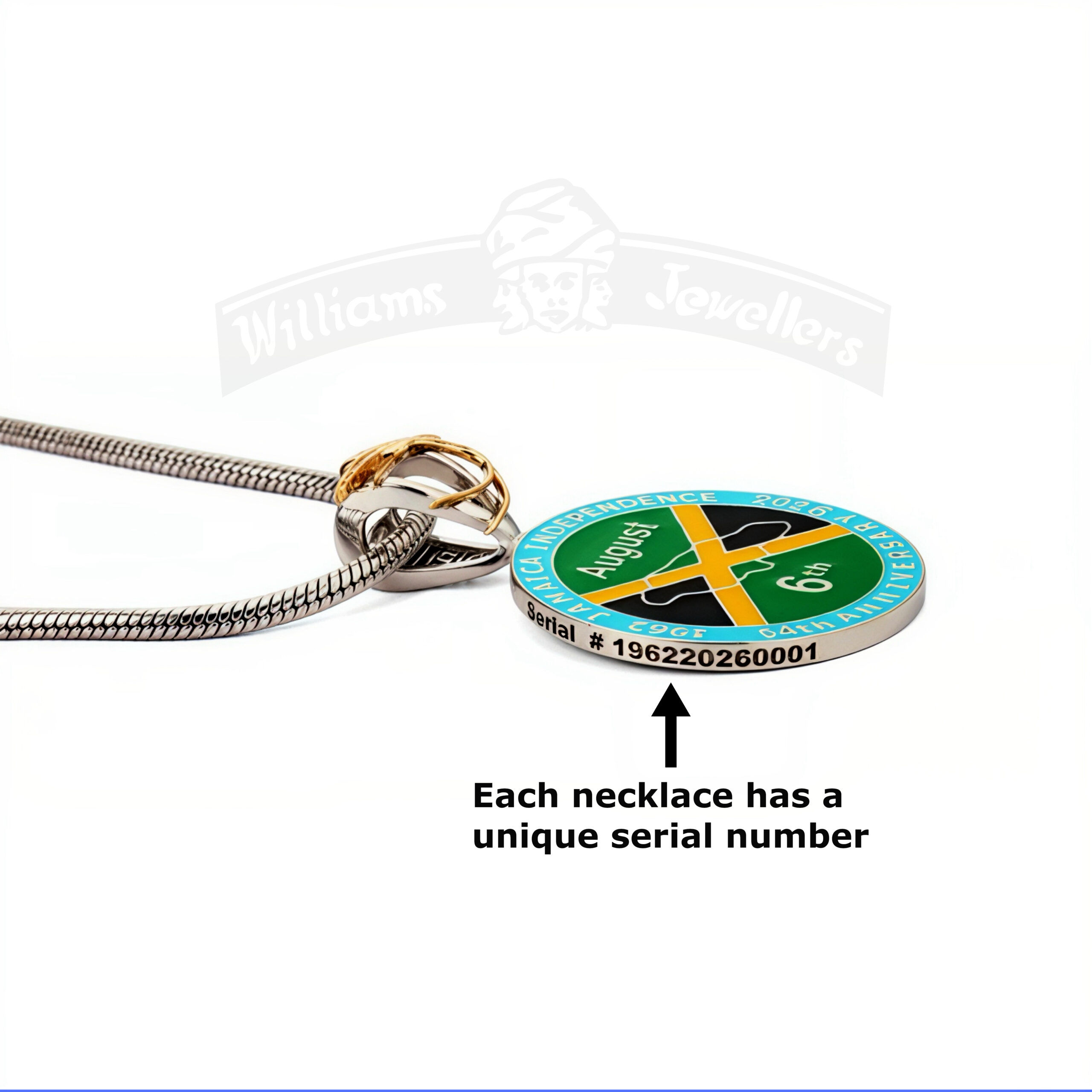 Dimensions: Thickness: 0.12 inch or 3mm Diameter: 1.50 inch or 38mm Weights: 925 Sterling silver 32.50 grams +/- .5gr 925 Sterling Silver/10K yellow 33.50 grams +/- .5gr Available in Sterling Silver, Sterling Silver & 10K, Sterling Silver & 14K or Sterling Silver & 18K yellow. make your selection. Each pendant is custom made and unique to you and only you. Your name is made into the pendant with it's own unique serial number